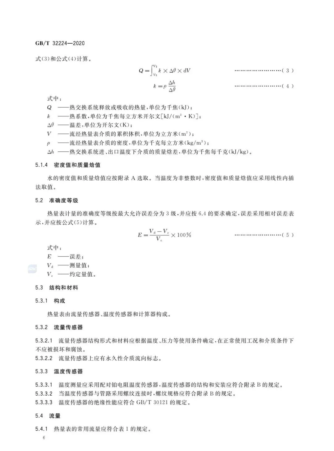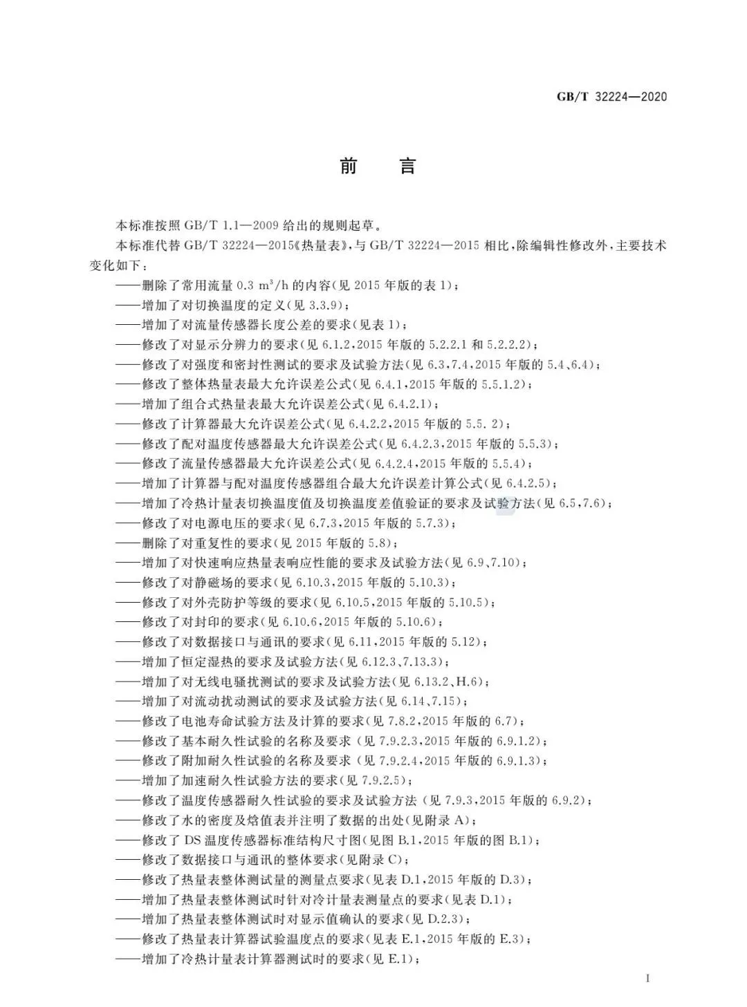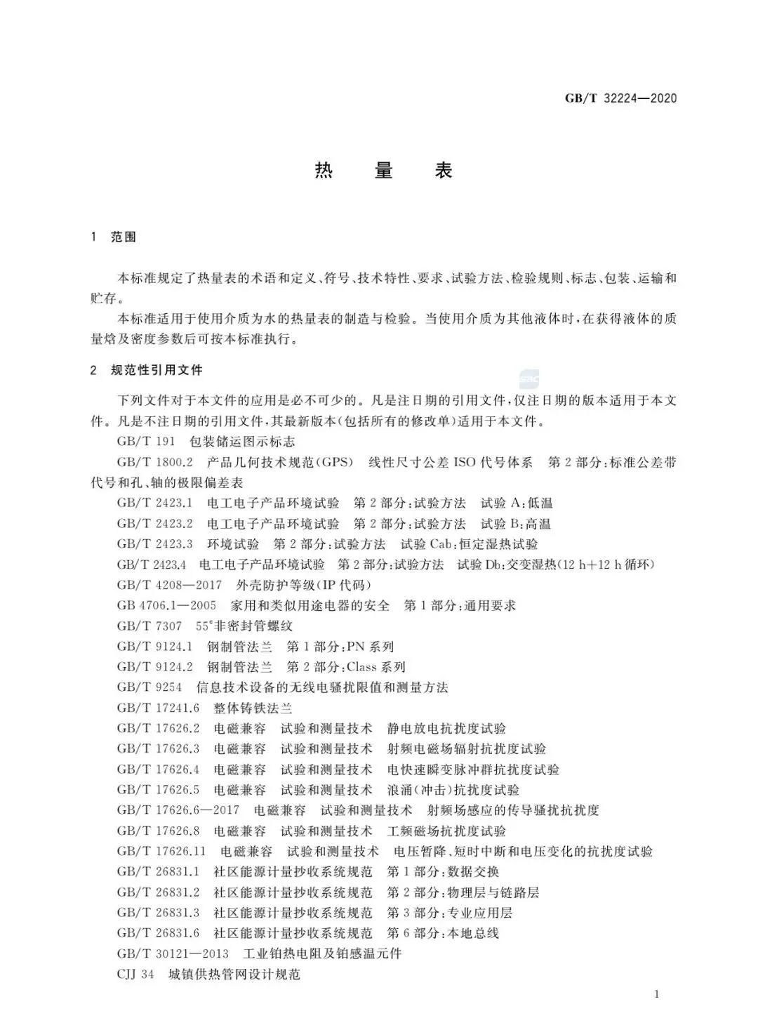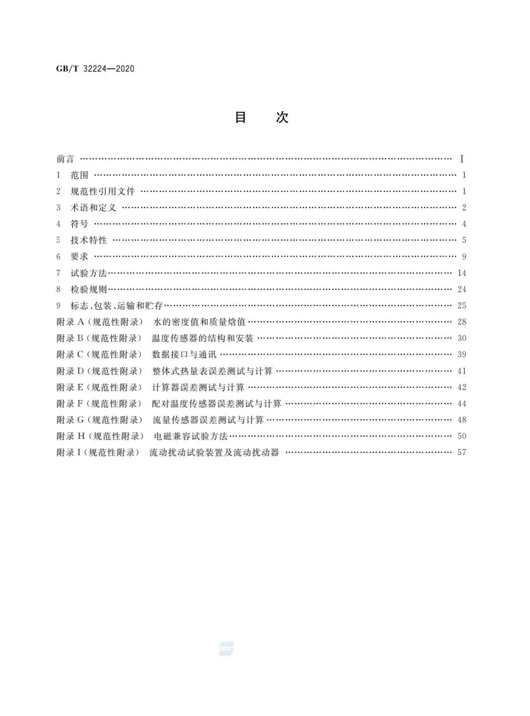 熱量表標準(GB/T 32224-2020)適用于使用介質(zhì)為水的熱量表的制造與檢驗。當使用介質(zhì)為其他液體時(shí),在獲得液體的質(zhì)量焓及密度參數后可按本標準執行。