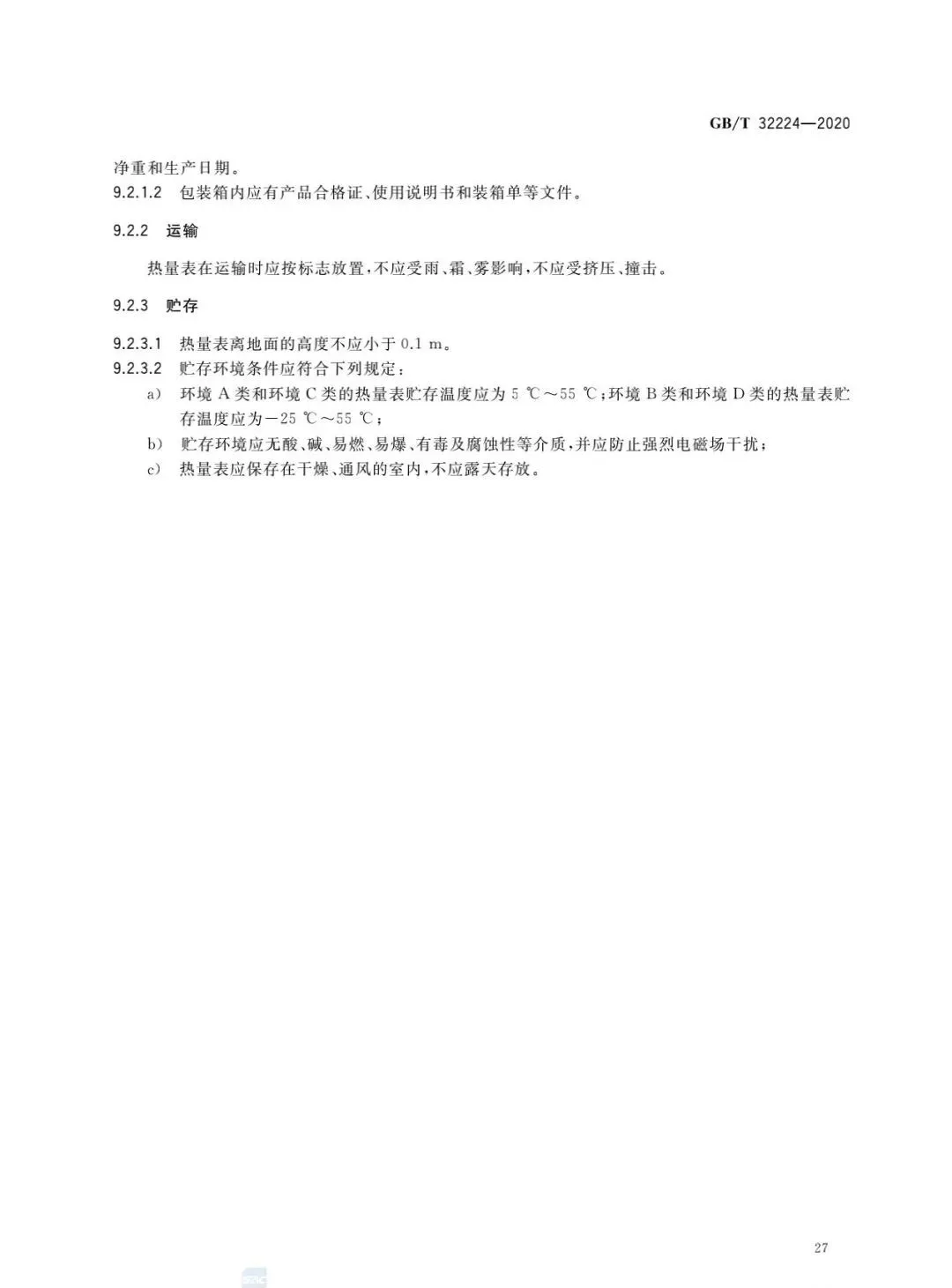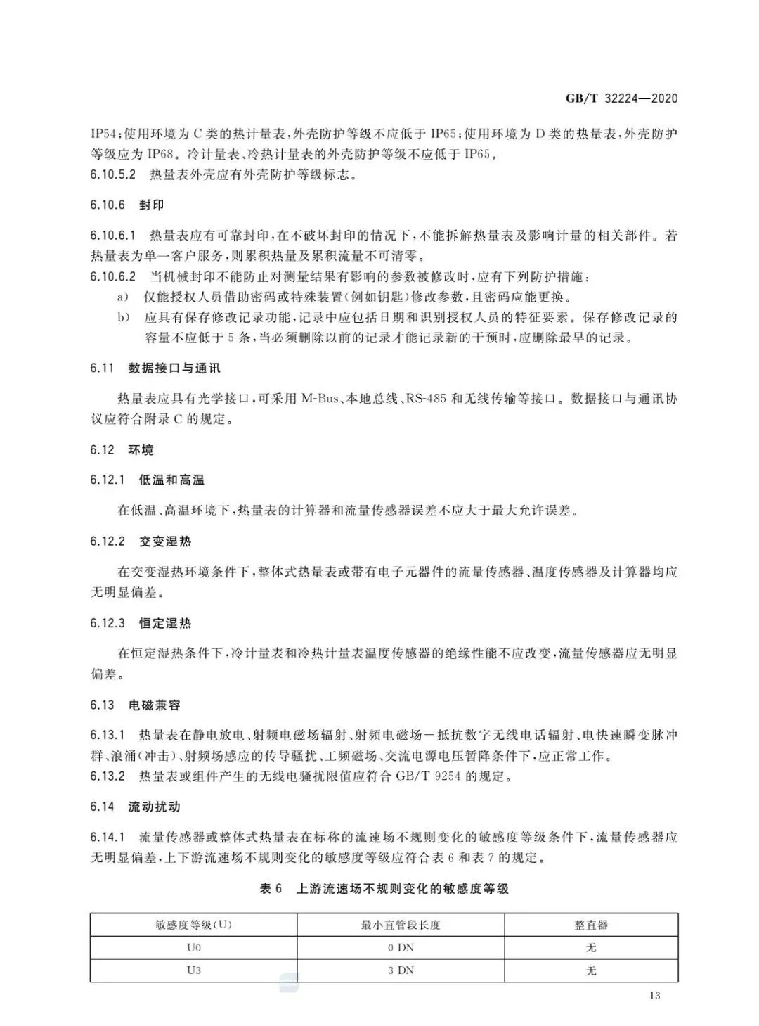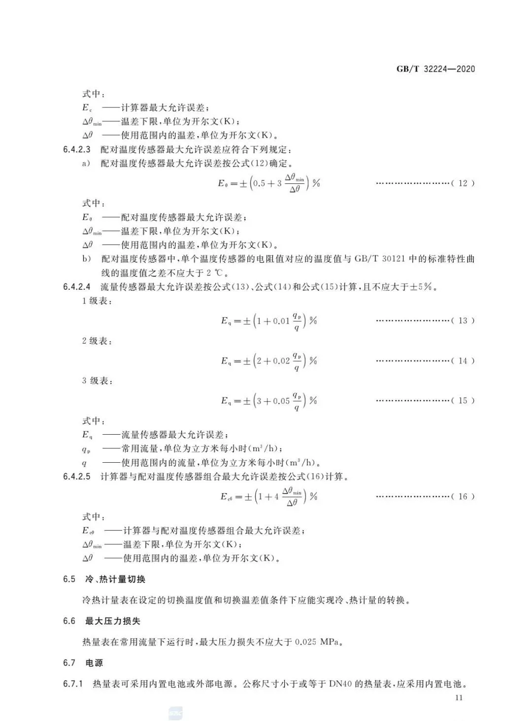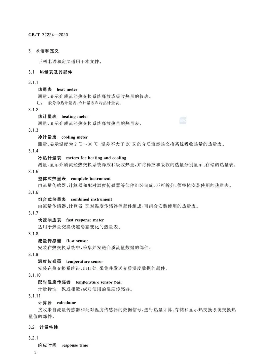 熱量表標準(GB/T 32224-2020)適用于使用介質(zhì)為水的熱量表的制造與檢驗。當使用介質(zhì)為其他液體時(shí),在獲得液體的質(zhì)量焓及密度參數后可按本標準執行。