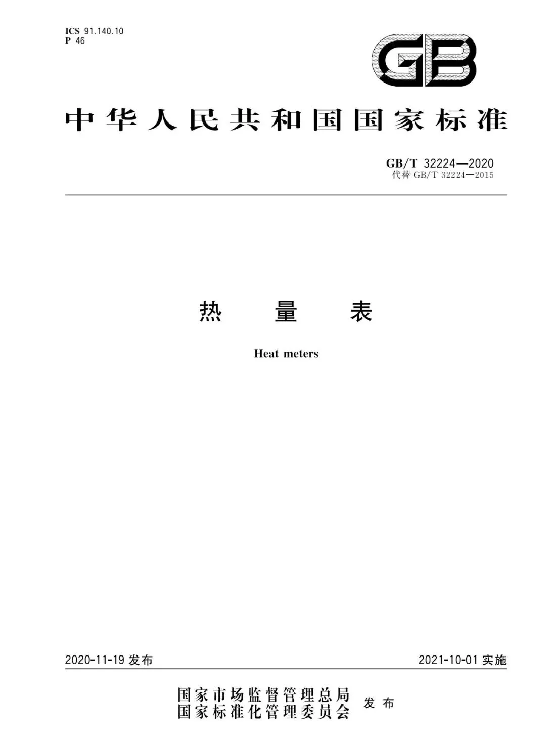 國家標準《GB/T 32224-2020 熱量表》自 2021 年 10 月 1 日起實(shí)施,代替原國家標準GB/T 32224-2015《熱量表》。本標準規定了熱量表的術(shù)語(yǔ)和定義、符號、技術(shù)特性、要求、試驗方法、檢驗規則、標志、包裝、運輸和貯存。